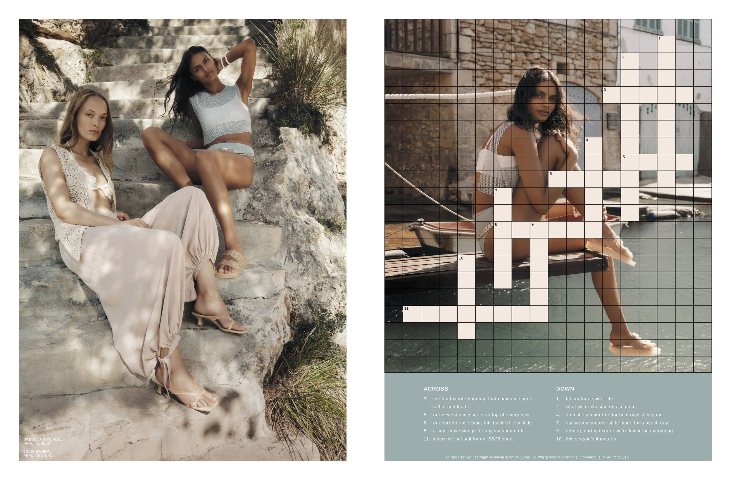 CAMPAIGN COLLATERAL. Postcards and newspaper for our Spring/Summer 2026 campaign shot in Mallorca, Spain. CD booklet for our Summer Boot campaign.